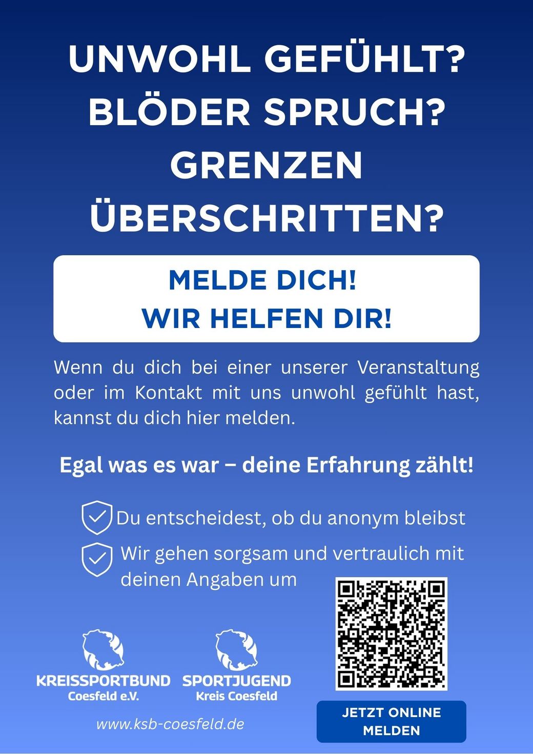 Der Kreissportbund Coesfeld e.V. und seine Sportjugend setzen sich für Vielfalt und ein respektvolles Miteinander ein. Wir möchten, dass sich alle Menschen bei unseren Angeboten sicher und willkommen fühlen.